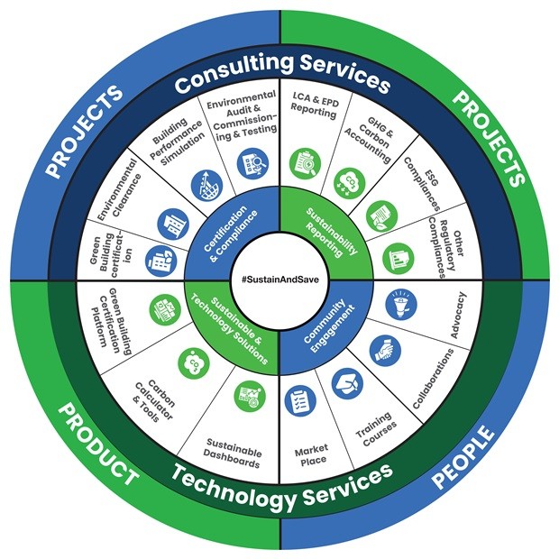 The world is transforming, and the future demands sustainability. Inspired by the five elements of life, Sustain and Save unfolds solutions for a greener and net-zero future. Sustain and Save is a premier environmental consultancy firm fostering sustainable practices in built environment with over 15+ years’ experience in services like Green Building Certification, Life Cycle Analysis, Environmental Product Declaration and Carbon Footprint Analysis.