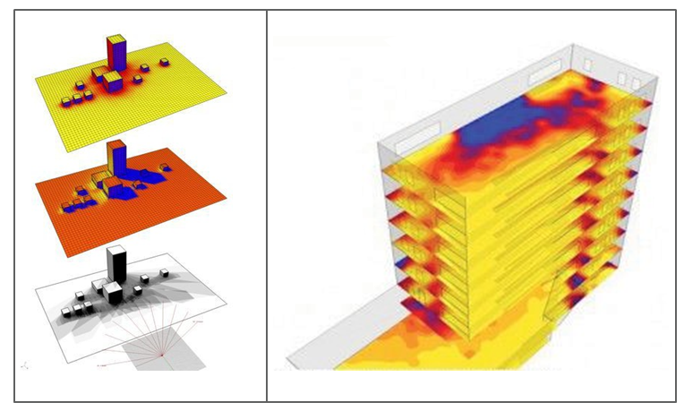 - Microclimate and shadow analysis to assess the building’s interaction with its surroundings, improving solar access and mitigating heat island effects.